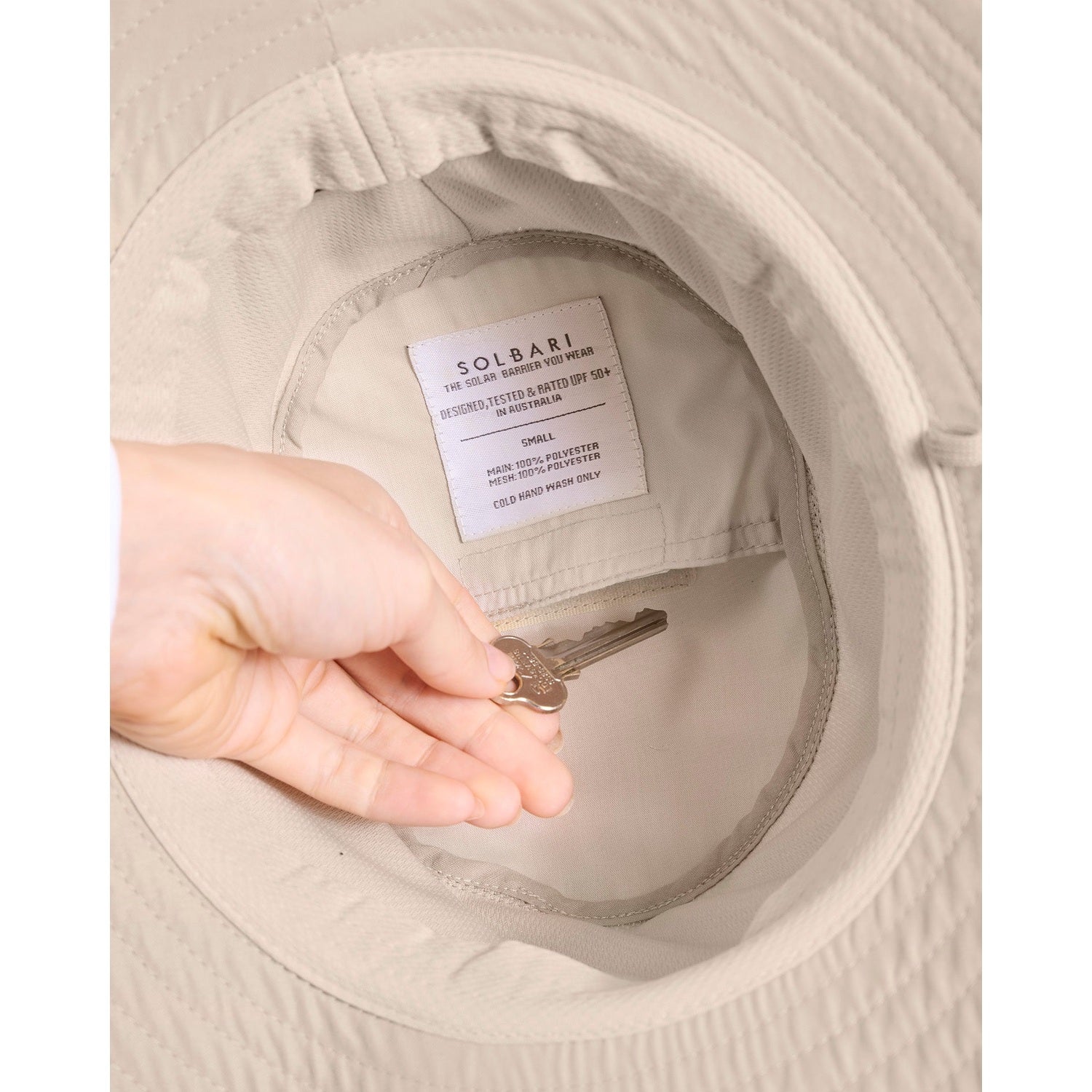 The Everyday Broad Brim Sun Hat is designed for comfort in warm weather. It’s lightweight, breathable fabric makes it perfect for outdoor use, and it features a small internal storage pocket.