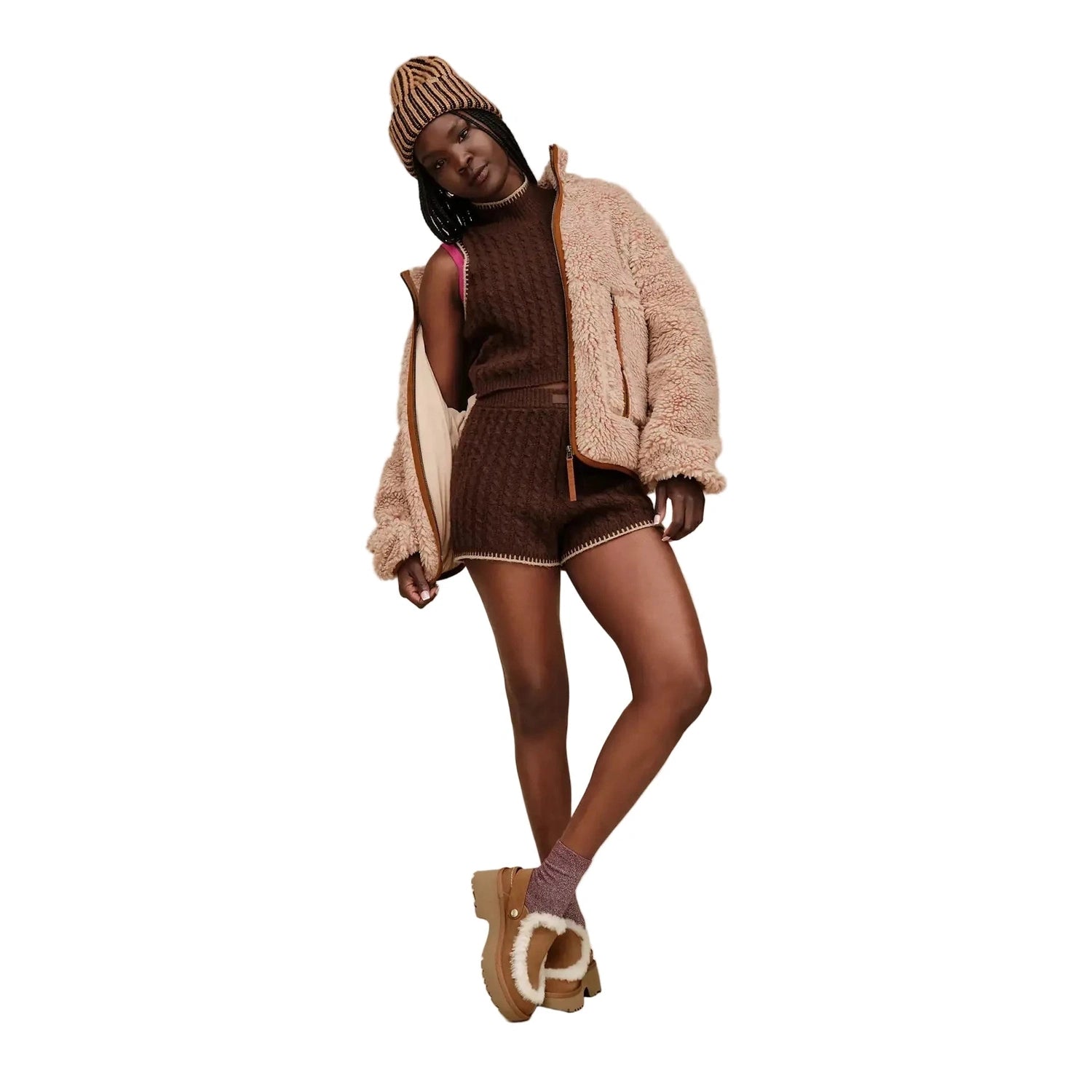 - Center front metal-coated zipper with The Graphic UGG® Font faux suede zipper pull