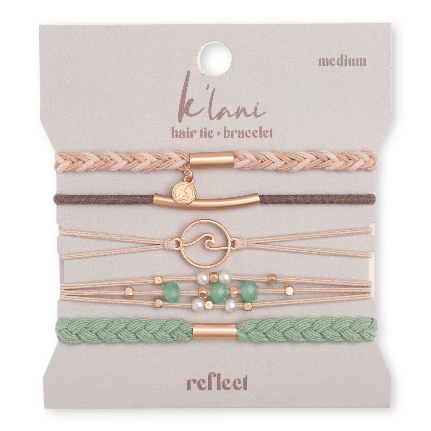 Looks like a bracelet, works like a hair-tie. Each K'lani set includes five hair tie bracelets that blend style and function. Designed to look like fashionable bracelets but work seamlessly as hair ties, these versatile accessories offer the perfect combination of practicality and flair.
