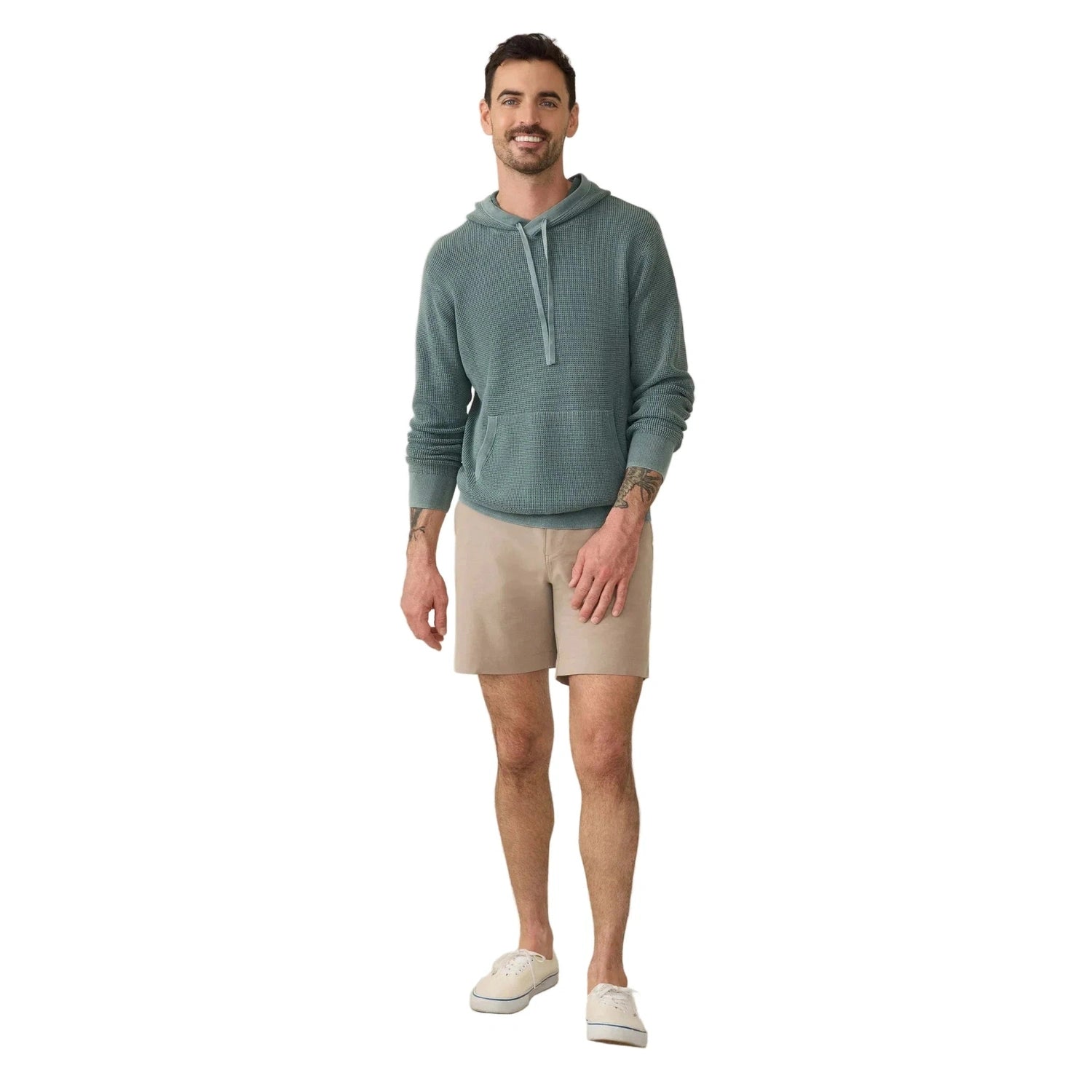 Designed as an easy-to-wear, transitional layer, this hoodie will be in your rotation all year round. Our cotton yarn is super soft but not overly warm and knit in an airy, waffle stitch giving the sweater dimension and texture. It's then garment-dyed and washed for a lived in, look and feel.